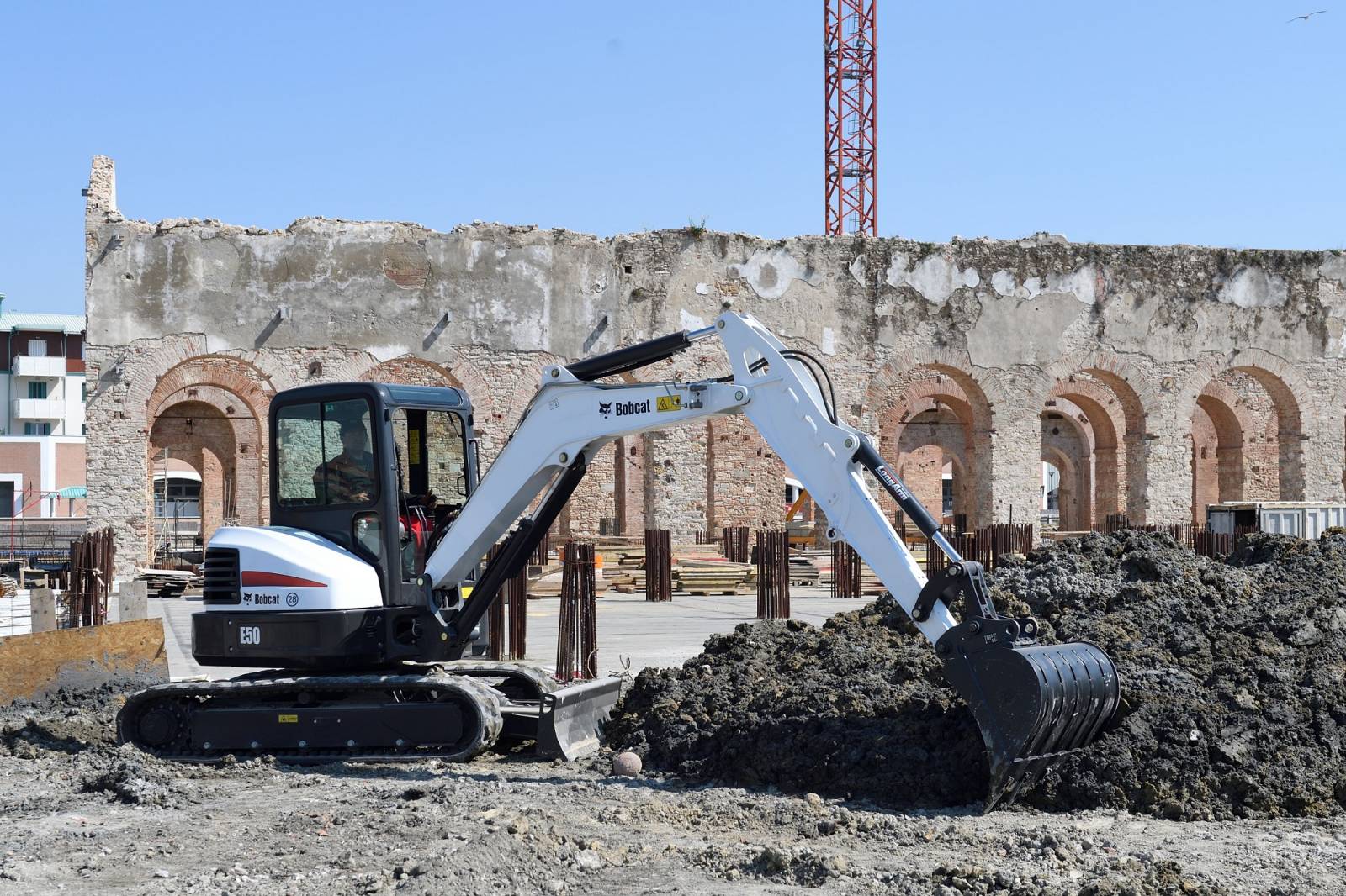 Confort inégalé pour l'opérateur :La pelle compacte E50 est dotée d’une toute nouvelle cabine qui offre à l’opérateur un vaste espace aux jambes , une réduction du bruit, de la chaleur et des vibrations. Le modèle E50 offre une visibilité à 360° avec une vue complète de la chenille droite et de l'arrière de la cabine.